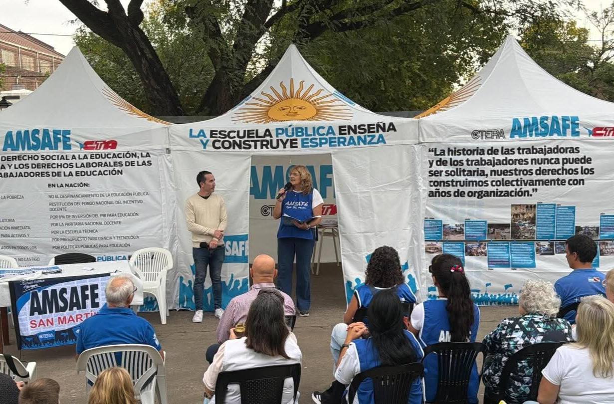 La actividad fue impulsada por la delegación Amsafe San Martín. La icónica protesta -que revive una histórica lucha realizada por el gremio a nivel nacional en los años 90- se realizó en el Anfiteatro Alina Novaira de la mencionada localidad, con múltiples actividades para visibilizar el reclamo docente.