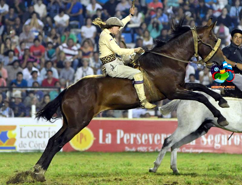 Noelia Ponce es una pionera en mujeres domadoras, y tiene motivos para verse como tal. Fue invitada a la edición 2015 del festival cordobés, cuando se instauró la competencia femenina. Luego logró dos títulos consecutivos para consagrarse como bicampeona.